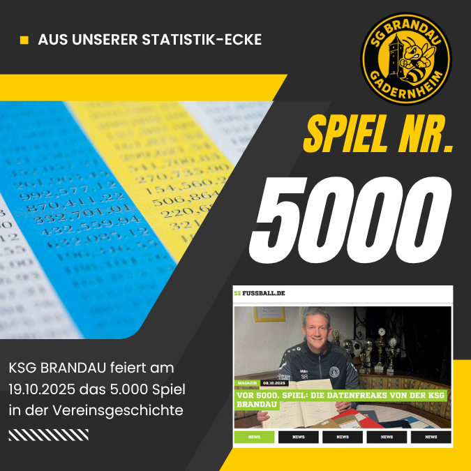 Ein schönes Jubiläum feiert die KSG Brandau am 19. Oktober 2025, denn da findet das 5.000 Spiel in der Vereinsgeschichte statt. Die 1b-Mannschaft spielt dann bei diesem besonderen Spiel in FC Ober-Abtsteinach. Fussball.de hat daraus einen schönen Bericht gemacht, der aktuell auf der Startseite zu sehen ist. Weiterlesen …